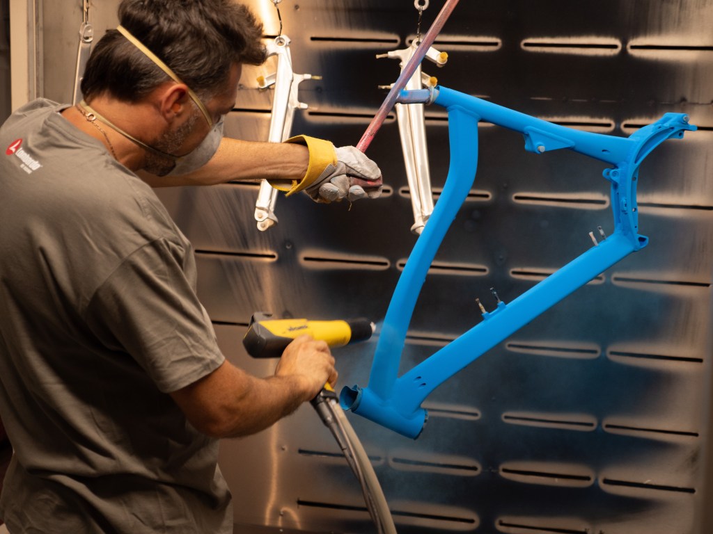 Il reparto di produzione, invece, vede una linea capace di trasportare le bici in verniciatura a secondo del tipo di materiale, mentre per quanto riguarda le linee di montaggio sono tre e, in questo periodo, lavorano a pieno ritmo. Il controllo qualità, il reparto adesivi, due bocche di carico e due di scarico completano i reparti di questa forte realtà interamente italiana.